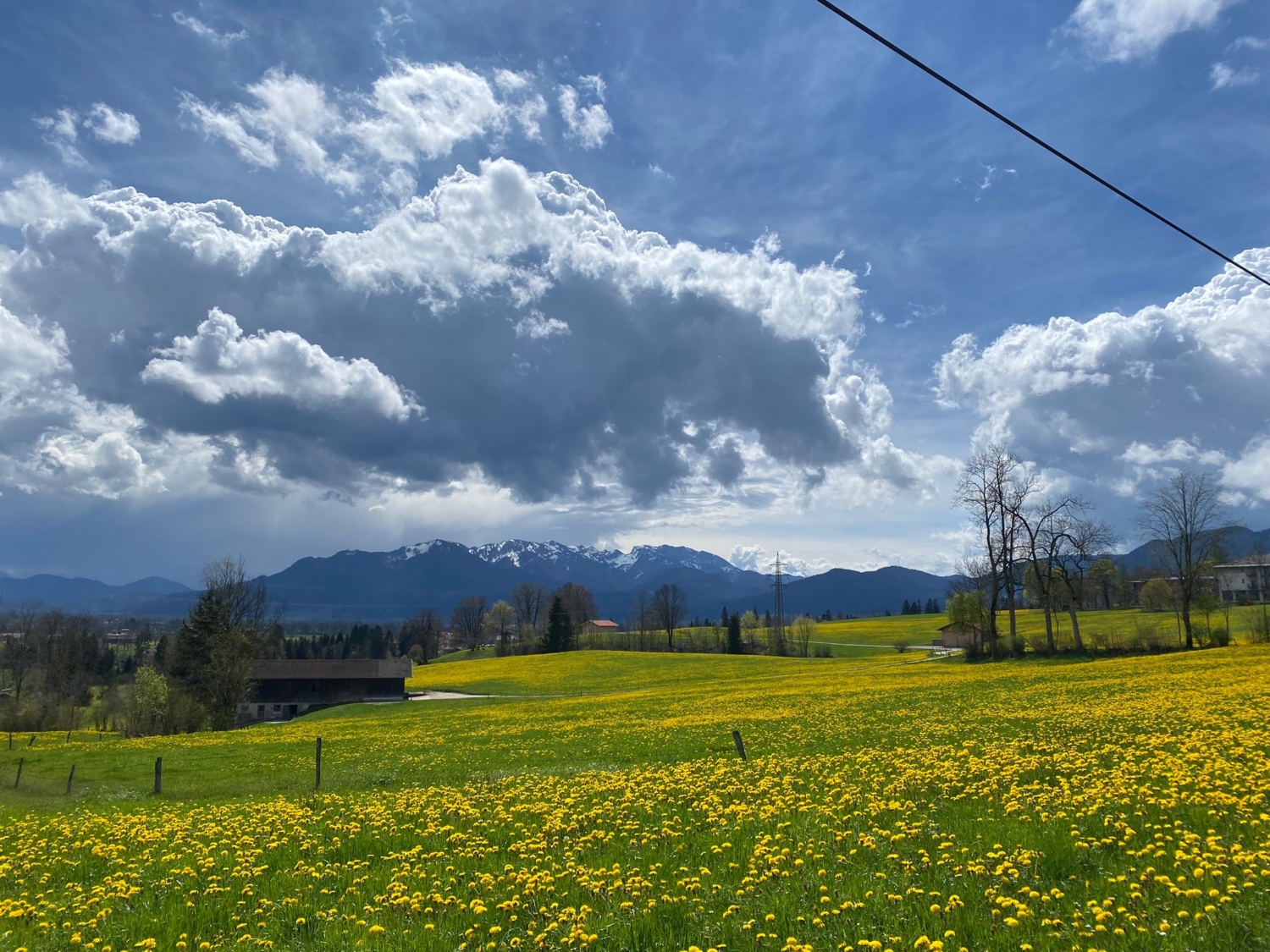 Unser Schmickhof in großzügiger Alleinlage ist umgeben von Wiesen, Weiden und den sanft ansteigenden Bergen des Isarwinkels.